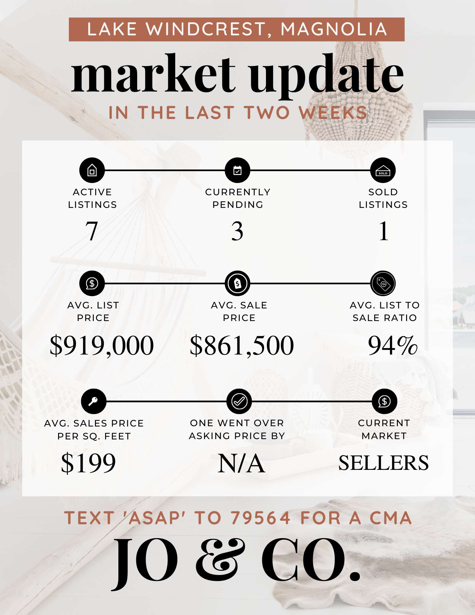 Hi neighbor, Today I will be sharing with you our perspective on the local real estate market here in Magnolia, Texas, specifically a market update for the neighborhood of Lake Windcrest. Whether you are looking to buy, sell, or just keep an eye on the market, we look forward to being your resource.
