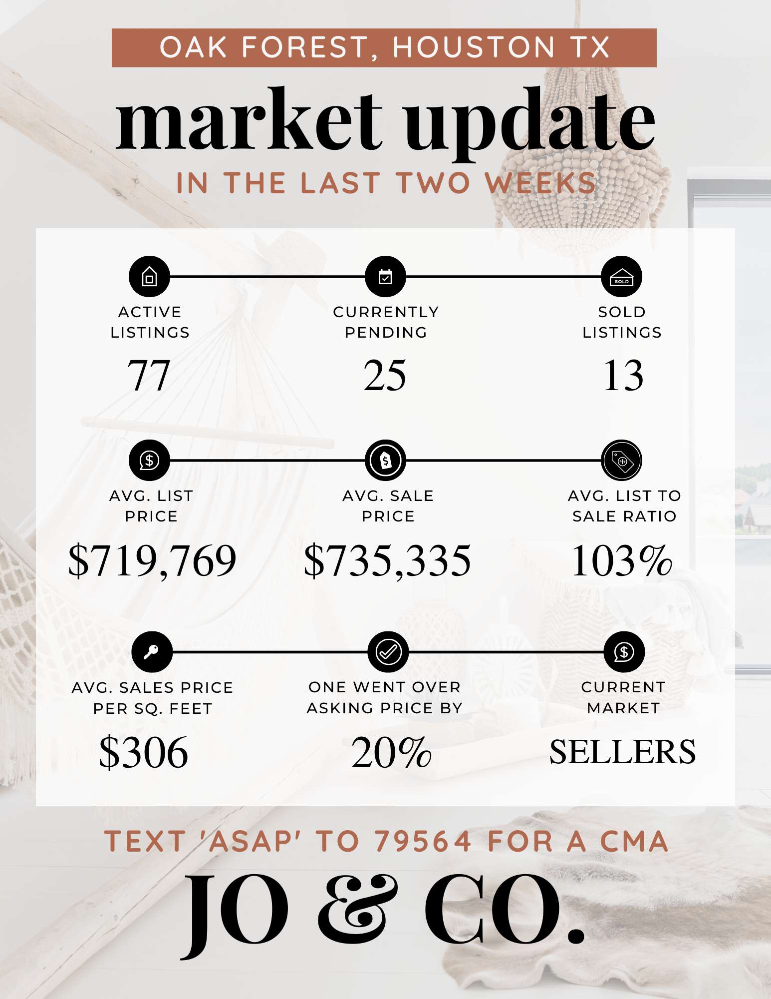 Hi neighbor, Today I will be sharing with you our perspective on the local real estate market here in Houston, Texas, specifically a market update for the neighborhood of Oak Forest. Whether you are looking to buy, sell, or just keep an eye on the market, we look forward to being your resource.