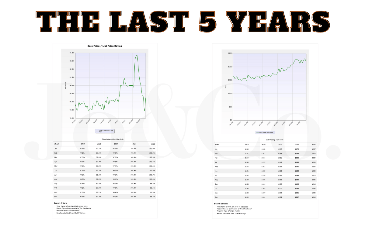 I want to leave you with two more sets of information housed in the graphic below. First, we have the sales price to list price ratio, which shows a slowdown in the marketing starting in September, and the second graphic shows us the historical average price per square foot for the last 5 years. (See all graphics legibly here.)